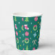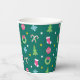 Christmas celebration pattern paper cup with Christmas tree, ball, candy cane, snowflake, wreath, garland, and sock decoration ornament elements. Express your Christmas spirit and joy with this product!