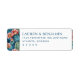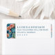 These return address labels feature a vibrant design with stylized cacti adorned with bright pink flowers set against a deep blue background, creating a lively and cheerful aesthetic. The layout is balanced with repeating cactus motifs on both sides, while the central text area offers customizable space for your details in an elegant serif font. Perfect for adding a personal touch to your mail, these labels convey a festive and inviting mood, ideal for celebrations or everyday use.