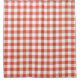 Add a cheerful accent to your bathroom with a custom shower curtain featuring reddish orange, light orange, and white squares in a bold buffalo plaid.