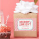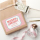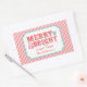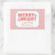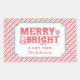 This Christmas sticker features a cheerful design with text that says "Wishing you a Merry & Bright Holiday Season." You can personalize with your name at the bottom. On the back is another coordinating pink and red diagonal stripe pattern.