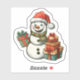 A joyful snowman adorned in a red Santa hat and cozy scarf stands cheerfully with colourful wrapped gifts. With a playful smile and bright eyes, this charming figure embodies the spirit of Christmas, celebrating the joy of giving and holiday cheer.