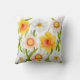Original fine art design of cheerful Spring daffodils and narcissus flowers by artist Carolyn McFann of Two Purring Cats Studio printed on a quality American Mojo pillow for floral art fans.