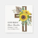 Cheerful, elegant sunflowers, eucalyptus, and pampas grass displayed on a dark wooden cross create this floral design for your baptism napkins. The large size of the cross creates an updated look. "God Bless" is above the name. The baptism date and location are also displayed on the napkin. This napkin is perfect for any late summer or autumn baptism.