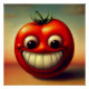 anthropomorphic tomato with a large, exaggerated grin and wide, expressive eyes.