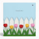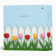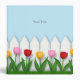 This charming design features a white picket fence and a row of red, pink, and yellow tulips. Use the space in the blue sky to write anything you need to keep your work, school work,or projects organized.