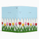 This charming design features a white picket fence and a row of red, pink, and yellow tulips. Use the space in the blue sky to write anything you need to keep your work, school work,or projects organized.