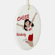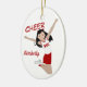 Cheerleader Black Hair Red & White Ceramic Ornament