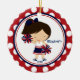 Dated Cute Blue & Red Cheerleader Cheering blue & red girl Christmas Ornament. A Wonder Christmas gift sure to be treasured for many years to come.