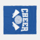Fleece blanket is shown in a colour of royal blue with a white cheer pom print.