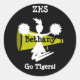 Cheerleader's stickers with cheer megaphone and cheerleader in black, gold, and white. Customize with your name and school name, change text or remove text. The background colour can be changed or other colour choices are available. Great gift or stocking stuffer for the cheerleader in your life. Buy in bulk and pass out at the pep rally!