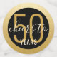 Custom Black and Gold Personalized Large Oversized Birthday Table Confetti Sprinkles for a Modern and Elegant Birthday Party for any Age with Faux Gold Foil Circle Border. Add the name and edit the age for any birthday party celebration with "Cheers to 50 years" and "Happy 50th!" text.