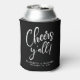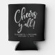 Give your wedding guests, bridal party and groomsmen a personalized keepsake souvenir of your special day. This modern black can cooler wedding party favour features "Cheers Y'all!" in a stylish white script. Add your first names and wedding date.