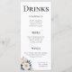 Cheers Couple Floral Blue Gold Menu Cards