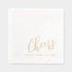 A modern simple elegant gold foil cheers wedding or couples event napkins. Personalize with your own choice of greeting, name and event date. Great for stylish wedding receptions, engagement parties or wedding anniversaries. Original design by www.mylittleeden.com