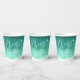 Loose abstract rich emerald green brush art wedding paper cups. A simple modern contemporary art design ideal for weddings or anniversary events in pretty shades of deep emerald green brushed through to white. Personalize with your own couples name or party details. © Original watercolor art and design by Sarah Trett for www.mylittleedenweddings.com