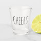 This custom shot glass features "cheers" in casual sans serif typography. Makes a funny gift for you, me, them, him, her, or anyone who wants to celebrate and toast to a moment with a shot, and with editable text, you can customize it.