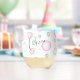 Cheers | Lively Fun Pink and Green Bubbles Stemless Wine Glass