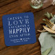 Cheers Love Laughter Happily Ever After Navy Blue Square Paper Coaster
