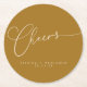 Cheers Minimal Mustard Gold Script Custom Wedding Round Paper Coaster