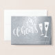 Cheers modern brushed script champagne flutes foil card