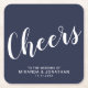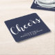 'Cheers' Modern Script Navy Blue Wedding Square Paper Coaster