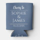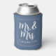Dusty Blue Cheers Mr. & Mrs. Can Cooler makes the perfect wedding favour for your guests to keep their drinks cold. Customize the front to say Cheers to the Bride and Groom with your wedding day / date. The back can be personalized to say Mr. & Mrs. Last Name. Bottom can include initials or monogram.