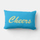 This fun blue outdoor cushion is decorated with a cheers written in a tropical yellow font, making it the perfect summertime accessory for the pool house, beach house, cottage, patio, deck or pool area. This pillow coordinates perfectly with a large selection of other pillows in the Outdoor Pillows Collection of PrattyFancyPillows .