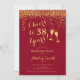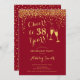Elegant retirement party invitation for men or women. Invite card in red and faux glitter gold. Features classy typography script font, champagne glasses and confetti. Cheers to retirement! Personalize with your own details. Can be customized to show any year. Printed Zazzle invitations or instant download digital template. Perfect for a stylish retirement celebration.
