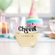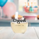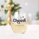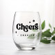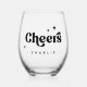 Stemless wine glass with black or custom colour text "Cheers" in a retro style font surrounded by retro stars and your custom name below.