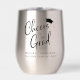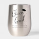 A fun thermal tumbler to celebrate the graduate. "Cheers to the Grad" is written in a modern script with a grad cap on top and you can personalize their name, class year and school in simple typography.