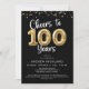 Cheers to 100 Years Gold Balloon Numbers Black Invitation