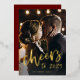 This modern and elegant happy new year card for 2023 features trendy gold foil script typography that says "cheers to 2023", and features your favourite personal photo. The back of the card is dark red.