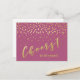 NewParkLane - Glamourous Postcard, with 'Cheers to 40 years!' in elegant brush/ script typography in faux gold, with gold confetti against a raspberry pink background. Fun and elegant design for any milestone birthday, since you can alter the age easily for a personalized design. Text styles & background colour can be modified to fit your needs.