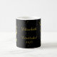 A special mug perfect for a 50th birthday or anniversary celebration. In stylish black with gold typography it states "Cheers to 50 years". The design also features small gold heart confetti scattered across the black background.