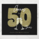 Elegant black and gold “Cheers to 50 Years” design with faux gold number 50 and champagne glasses, which can be customized with your own name.