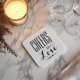 Wedding reception drink coasters feature "Cheers to Love" black typography design. White background colour can be modified to coordinate with other wedding colours.