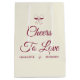 Cheers To Love Burgundy Script Ivory Bow Wedding Medium Gift Bag