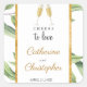 This Cheers to Love Engagement Party Napkin design features two champagne glasses in a toast to love. There is a pretty gold frame with green, modern botanical accents that surround the text on the front of this modern and chic engagement party favour sticker. Personalize this wedding accessory with your names and the date of your event.