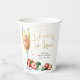 Strawberry and champagne paper cups, lettered with Cheers to Love in casually elegant gold calligraphy. Watercolor design with a glass of champagne, strawberries and strawberry flower. The template is ready for you to personalize for any occasion, such as bridal shower, couples shower, anniversary, engagement etc.