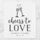 Make a toast to love at your wedding or engagement party with our sweetly romantic wine or sparkling wine labels. Chic black and white design features a pair of sparkling wine flutes joined by an effervescent heart. "Cheers to love" appears beneath in black calligraphy script and vintage block typography. Customize with your names and wedding date.