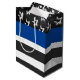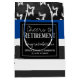 Unique and fun personalized retirement "cheers to retirement" blue line design police officer themed retirement party supplies. All text is adjustable. fun stylized stars on a faux wood textured background.
