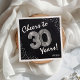 Black and silver 'Cheers to 30 Years" Birthday Party Napkins! Design features a rustic black chalkboard with a faux silver helum thirty balloon, faux silver confetti and name.