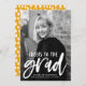 Stylish, modern graduation announcements featuring the graduate's vertical photo with "Cheers to the grad" in a white, hand-lettered brush script. Personalize the front of the announcement by adding the graduate's name, school name, and graduation year. The photo graduation announcement reverses to display a yellow-gold and white abstract dot pattern.
