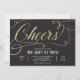 This New Year Party invitation features a black background with gold elegant scripts. Elegant scripts "Cheers" in gold make this card perfect for any New Year party or New Year's Eve party. Please note, no real foil will be used in this card.
