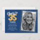 Celebrate turning 35 in style with our sophisticated birthday party invitations. Designed with a sleek blue background, customizable to any hue of your choice, these invites feature a glorious faux gold glitter accent, gold helium balloons, and a space for a cherished photo. The modern 35th birthday celebration text template is easy to personalize, ensuring your milestone birthday celebration gets off to a memorable start.