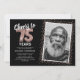 Celebrate your special 75th milestone in style with our finely tailored invitations. Designed with a customizable black background that transitions to your chosen hue, these invites capture the essence of the celebrant with a special photo placement. A splash of faux rose gold glitter and helium balloons adds a touch of elegance while the modern text template allows you to add your own personal flair. Make your 75th birthday celebration truly unforgettable with our unique invitations.