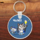 Cute keychains make fun personalized gifts: A cute cartoon cat that's a black and white kitten, is making a champagne toast. In kitty cat language, they say "Meows" instead of Cheers. But some cats say "Meowza!", and in France they say "Mieaux", in Spain they say "Meowias"... then there are the dialects... but we'll save those for now.
