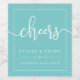 Treat your wedding guests to a bottle of wine and attach our chic custom labels for an extra special touch! Turquoise aqua and white labels feature "cheers" in handwritten style script typography with your names, wedding date and wine varietal or custom message beneath.