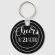 Cheers to (Your Age) Keychain. Black and white design but the background can be changed.