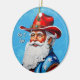 Cheery Santa Claus in a Western Hat Christmas Ceramic Ornament